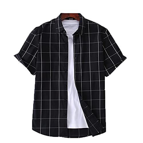 Camicia a Quadri da Uomo Moda Manica Corta Allentata Estate Gioventù Camicetta Comoda Primavera Colletto rovesciato Top in Cotone