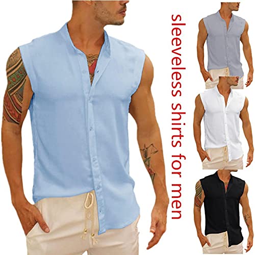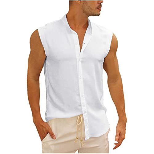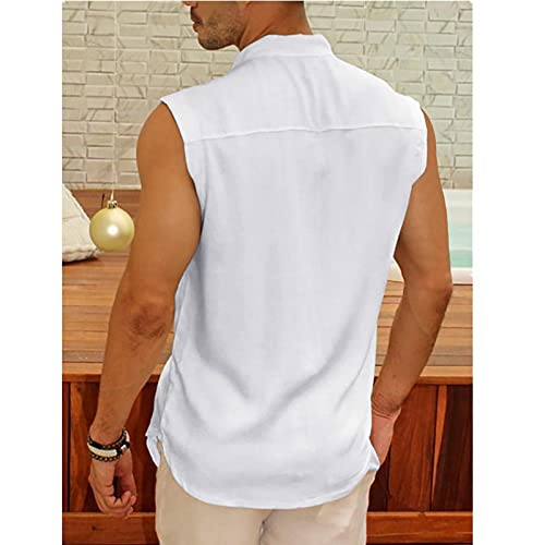 Camicia Senza Maniche Semplice per Uomo Cardigan Senza Maniche con Collo in Piedi Tinta Unita Moda Casual Bianco L