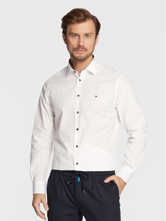 Tommy Hilfiger Camicia Solid Poplin MW0MW28495 Bianco Regular Fit