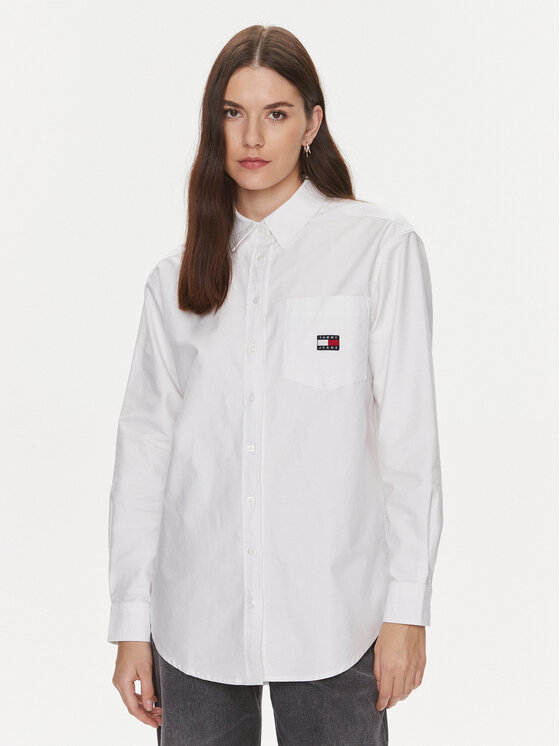 Tommy Jeans Camicia Badge Boyfriend DW0DW17351 Bianco Relaxed Fit