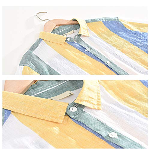 Camicia da Uomo Camicia Casual Monopetto Ampia e Traspirante Camicia a Maniche a Tre Quarti a Righe con personalità di Moda retrò M