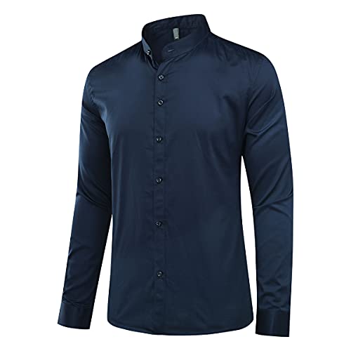 Camicia da Uomo, Colletto Alto, Slim Fit, a Maniche Lunghe, Business Nozze Formale Shirt Smoking Cotone Dunkel Blau