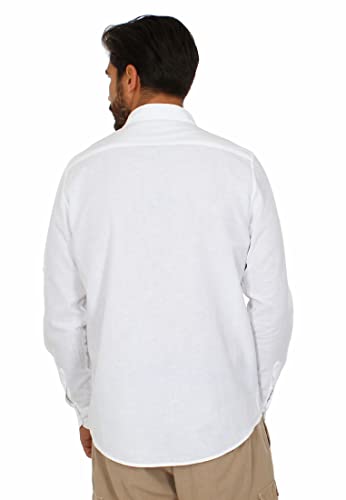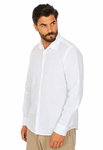 Camicia Uomo Lino Slim Fit Manica Lunga Estiva Camicie Sartoriali Eleganti Casual (Bianco, l)