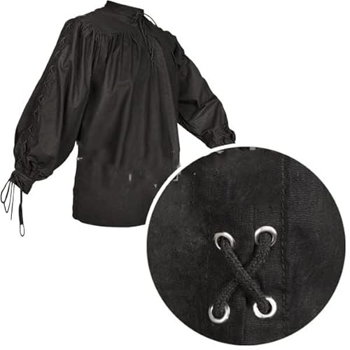 Camicia da Uomo Pirata Gotica Rinascimentale Manica Lunga Lino Sciolto Pullover Vintage Etnico Spiaggia Yoga Top Maglietta Victoria Costume di Halloween (Nero,XXL)