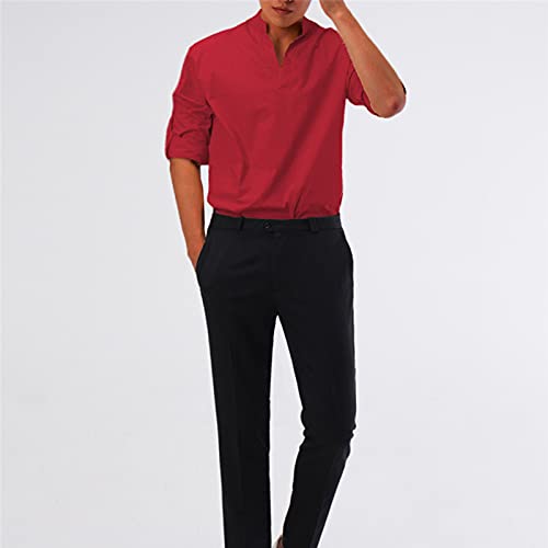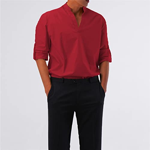 Camicia Uomo Regular Fit Maniche Lunghe Collo Coreana Maglietta da Uomo A Maniche Lunghe T Shirt Lino con Bottoni Camicia Slim Fit Elasticizzata Camicia Lino Tinta Unita Ragazzo Casual Coreana