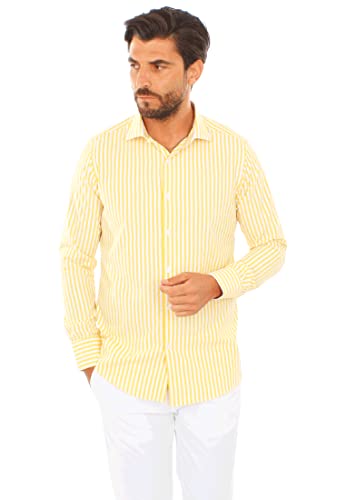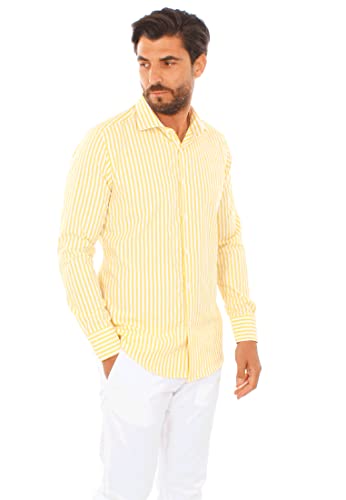 Camicia Uomo Slim Fit in Cotone a Righe Made in Italy Elegante (XL, Giallo)