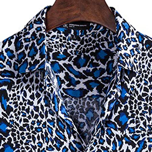 Camicie Camicetta Top T-Shirt Uomo Casual Camicia con Stampa Leopardata Manica Lunga Bottone Colletto rovesciato Top (XL,1blu)