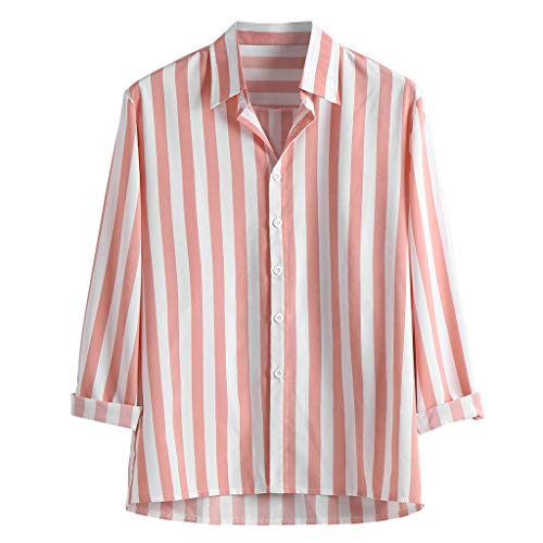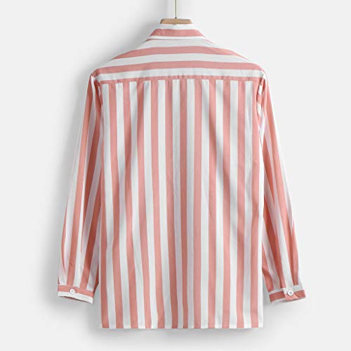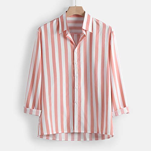 Camicie Eleganti da Uomo Moda a Righe Verticali Slim Fit Manica Lunga Casual Button Down (M,7rosa)