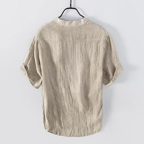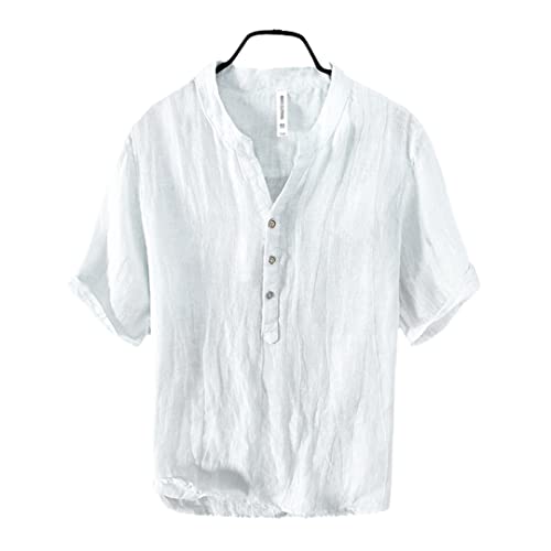 Camicie estive da uomo tinta unita 100% lino maniche corte camicie traspiranti, bianco, M