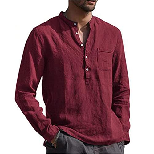 Camicie a maniche lunghe da uomo in cotone Linea Estate Tinta unita Collare Stand-up Casual Beach Style PlSize, bianco, S