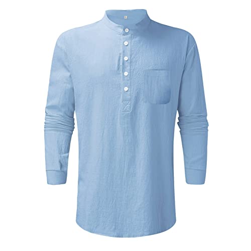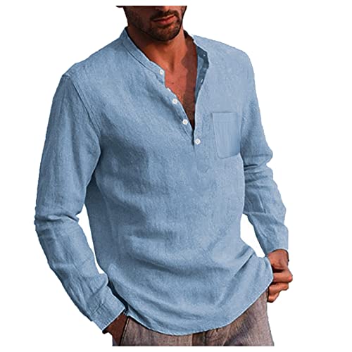 Camicie da uomo Camicetta da uomo in cotone tinta unita Beach Basic Camicetta T-shirt per uomo, Blu, S