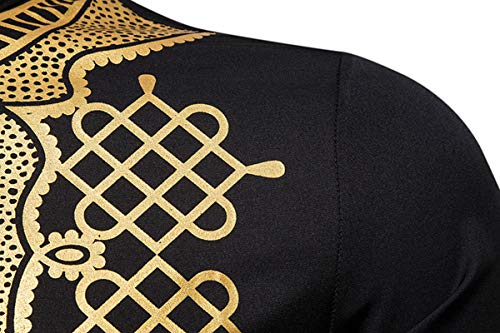 Camicie da Uomo, Camicia Casual da Uomo in Cotone di Media Lunghezza con Motivo abbronzante Colletto alla Coreana da Uomo in Stile Etnico
