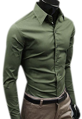 Camicie Uomo Slim Fit Maniche Lunghe Casual Camicia Abito Camicia Affari Top Classiche Formale Camicetta Shirt Moda Men Colore Puro Shirts Army Green M