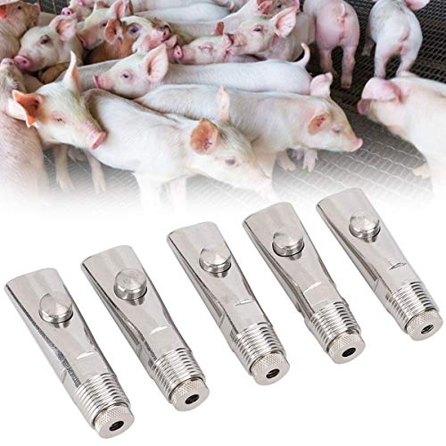 Camidy Abbeveratoio per Suini da 5 Pezzi Bevitore con Cuscinetti a Sfera in Metallo Antispruzzo Accessorio per Bere Acqua per Coltivatori di Suini da Fattoria