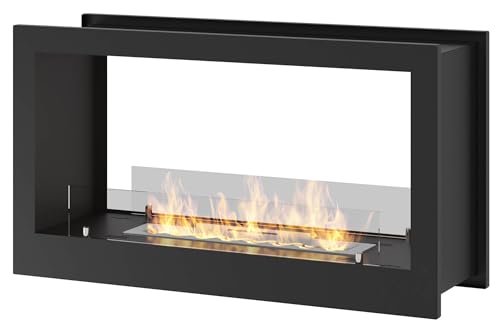 Camino a Bioetanolo da Incasso 90x50 cm Bifacciale 2 Side 900 Nero con Vetro