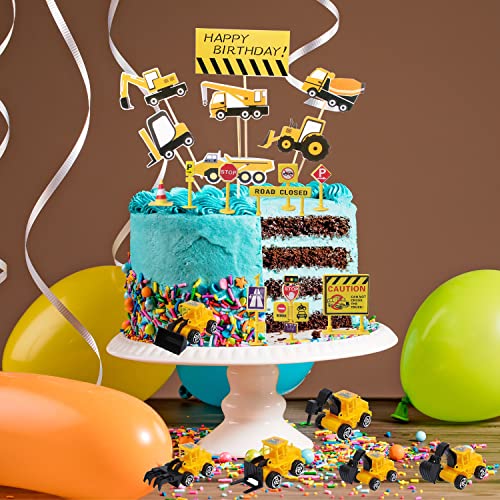 Camion per l'edilizia Decorazione di Torte, 22 Pezzi Decorazione Torta di Compleanno, Veicolo da Costruzione Cupcake Topper, Giocattoli di Cartello Stradale Topper, Torta Decorazione Festa
