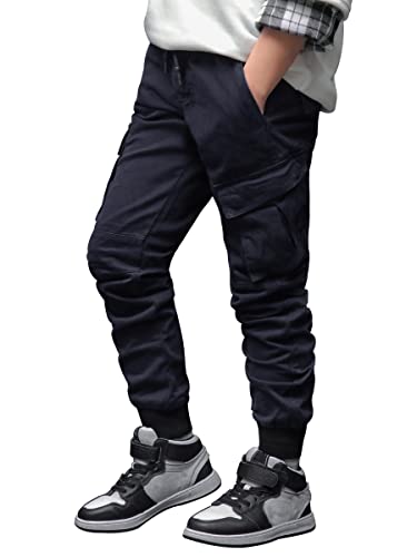 CAMLAKEE Pantaloni Jogger Bambino con Elastico in Vita, Pantalone Cargo da Ragazzo, Blu Scuro, 140 / Taglia 10