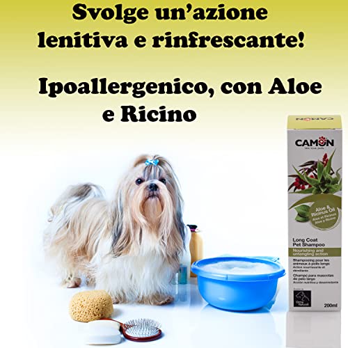 Camon-Shampoo per Cani con Pelo lungo. Shampoo Cani ideale per la Pulizia del Pelo e la Toilette per Cani. Shampoo Cane Pelo Lungo districante e rinforzante. Shampoo Cani Profumato 200ml