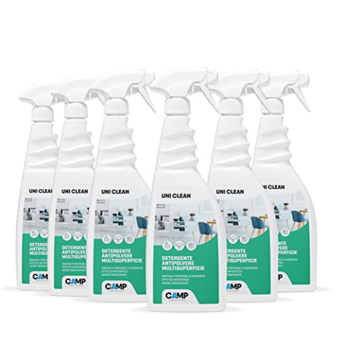 CAMP UNI CLEAN, Detergente antipolvere multisuperficie, antistatico, Gradevolmente profumato, Azione igienizzante, pack 6x750ml