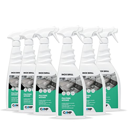 CAMP INOX BRILL, Pulitore lucidante e protettivo per superfici in acciaio lucido e satinato, Anticalcare, Gradevolmente profumato, pack 6x750ml
