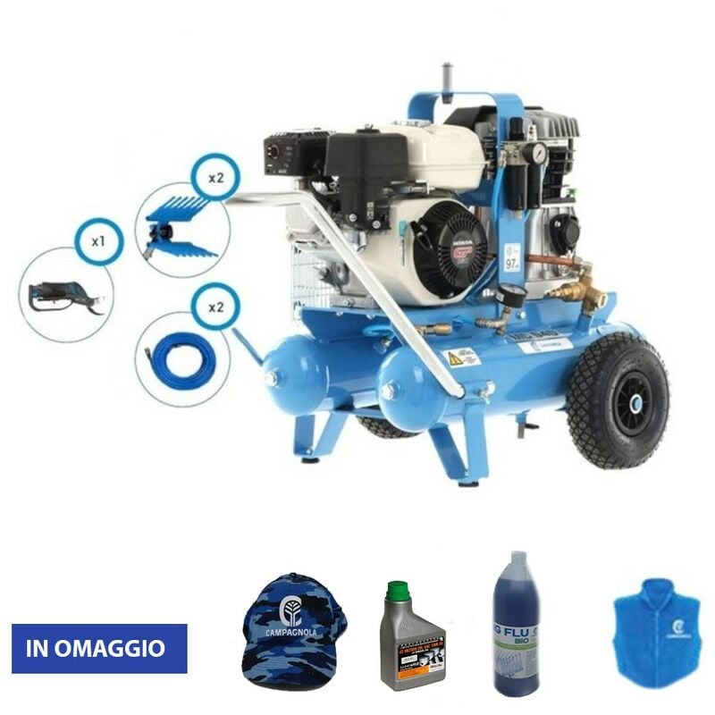 Descrizione Ideale per un uso semiprofessionale e disponibile solo in kit, il motocompressore Campagnola MC 545 è stato realizzato per alimentare 2 o 3 abbacchiatori. Gli abbacchiatori pneumatici professionali TUONO EVO, caratterizzati per una buona fluidità tra i rami, sono adatti per tutti i tipi di cultivar e per ciascun grado di maturazione delle olive. I rebbi a forma di diapason dei suoi rastrelli in tecnopolimero sono un brevetto Campagnola e il motore pneumatico in lega di magnesio ha il compito di ridurre il problema del gelo. Per agevolare il raffreddamento e ottenere una lubrificazione maggiore, l'aria di scarico di questi utensili professionali è direzionata verso gli organi in movimento. Lo scuotitore per olive TUONO EVO, grazie alla corsa breve di pistone e rastrelli, ha una superiore velocità di battuta (1800 rpm a 6 bar, peso 1 kg). Tabella tecnica: Quantità forbici alimentabili: 4 Quantità potatori alimentabili: 1 Quantità abbacchiatori alimentabili: 2/3 Avviamento