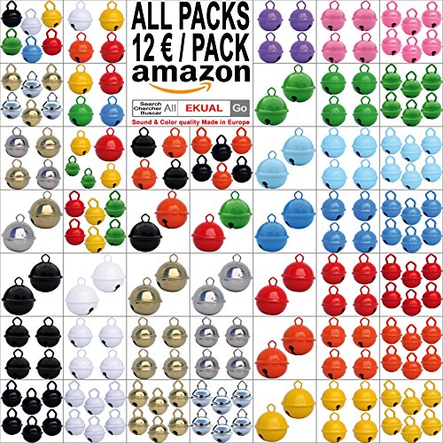 Campanellini 2 oro + 2 argento (4x 25 mm) Campanelle colorati musicali metallo 16 colori: giganti 35mm grandi 25mm piccoli 15mm, Fai da te decorazioni natale giochi Montessori gatto cani sonaglio