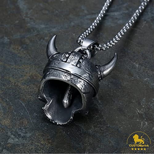 Campanello da moto Vichingo Skull, Amuleto guardian bell portafortuna Biker Triker, finitura cromata in custodia in velluto,inox
