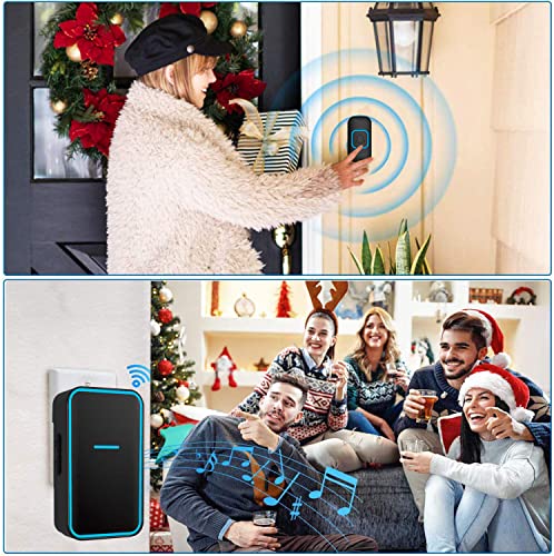 RAGGIO D'AZIONE LUNGO & SEGNALE PIÙ POTENTE: Funziona entro 300 metri nello spazio aperto, il segnale di questo campanello penetra gli ostacoli molto bene. È possibile collegare il ricevitori ovunque si desidera nella vostra casa. Nessun problema di interferenza wireless.