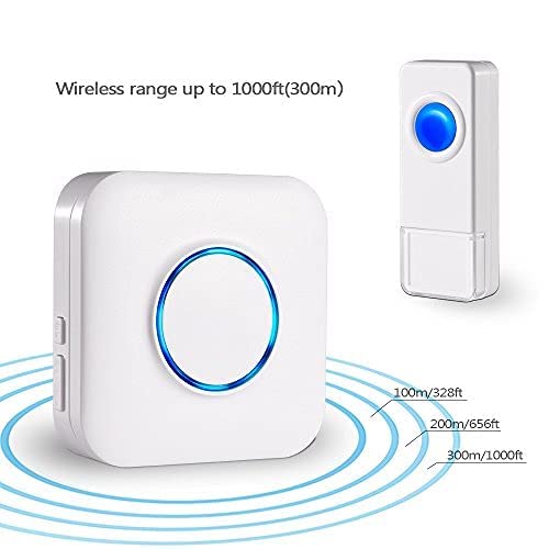 300 M WIRELESS PORTATA - La portata tra trasmettitore e ricevitore è fino a 300 M / 1000 FT, cioè puoi essere sicuro che sarai avvisato in tutta la casa non appena qualcuno suona il campanello della radio. Il sistema di codici digitali può generare codici diversi sulla stessa frequenza, quindi non devi preoccuparti di interferenze con i sistemi vicini.