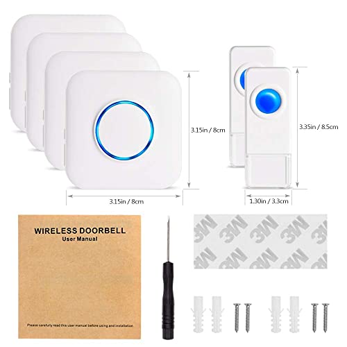 Campanello senza fili impermeabile BITIWEND, campanello senza fili 2 trasmettitori e 4 ricevitori con portata 300M 58 suonerie LED display (Bianco))