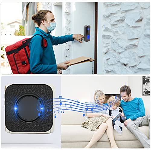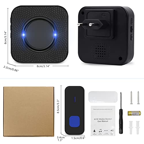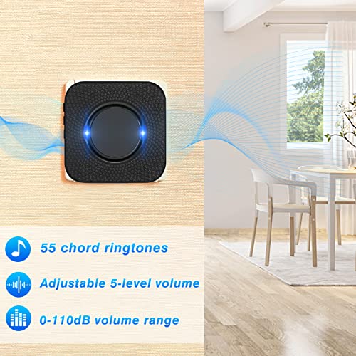 Campanello Senza Fili, Campanello Porta Plug-in Portata 300 m, Campanello Casa con 55 Suonerie 5 Livelli di Volume, Flash LED per Hotel Ministero Interni, Quadrato, nero