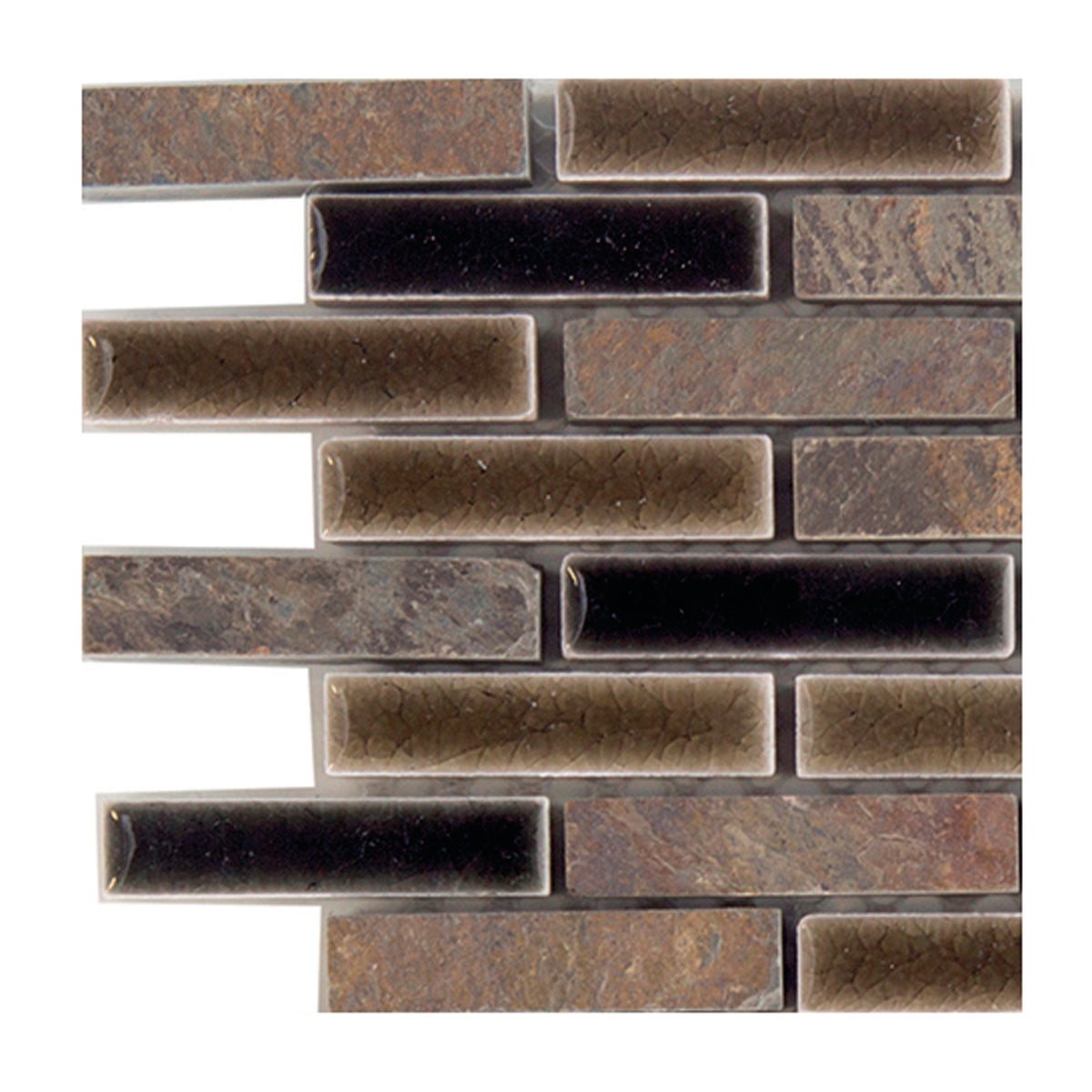 Campione in pietra. Ideale per posa a parete in ambienti interni alla casa, ma ottimo anche per creare listelli e/o inserti decorativi perché facile da tagliare. Si adatta a tutte le superfici sia dritte che ondulate. Mosaico ideale per la decorazione da interno, con effetto tenuamente metallizzato che crea un mutevole e gradevole gioco di luce e colori.. Lo spessore 8 mm è particolarmente indicato per essere posato in abbinamento con la maggior parte delle piastrelle