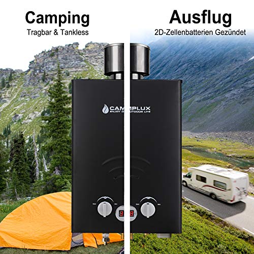 ➤ Acqua calda istantanea da 6 l/min - Con una pressione dell'acqua di 0,25 bar all'avvio e accesa da batterie a celle 2D, è ideale per campeggi, camper, stalle, carrelli e altre aree fuori dalla griglia.