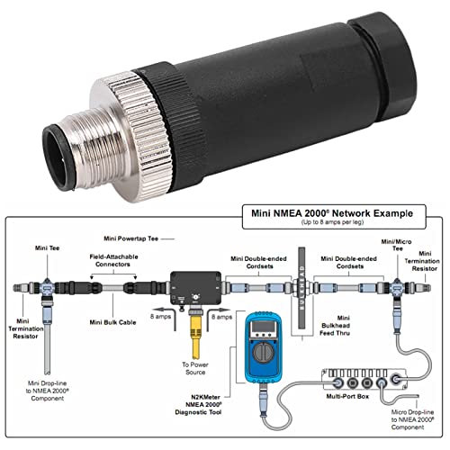 Campo Maschio Installabile,Connettore Installabile sul Campo, per NMEA 2000 Connettore Installabile M12 5 Core IP67 Impermeabile Accessori per Barche per Lowrance Networks