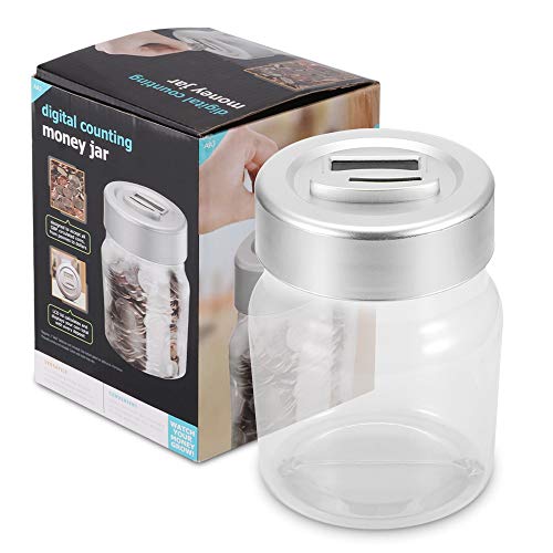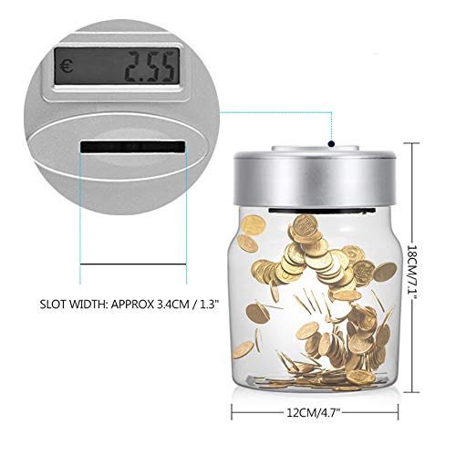 CONTEGGIO DIGITALE VASO DI SALVATAGGIO MONETE EU - Questo barattolo trasparente ha uno schermo LCD su un coperchio che aiuta a contare le monete mentre scivolano attraverso la fessura. Conta accuratamente i tuoi soldi e mostra il totale per ogni deposito.