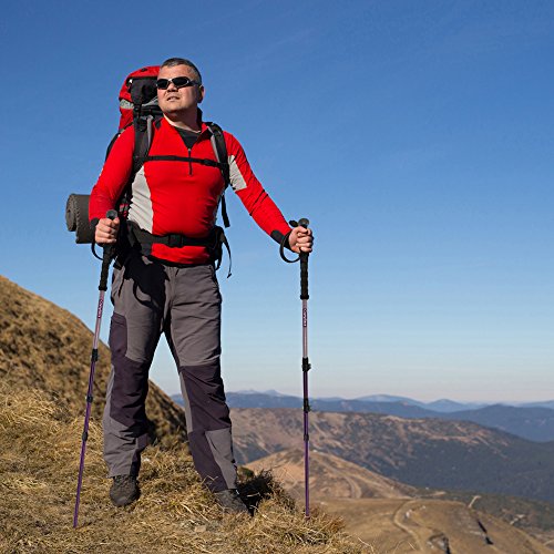 CampTeck U6333 Coppia di Bastoncini Telescopici Anti-Shock di Carbonio Nordic Walking Trekking 65-135 cm con Custodia & 2 Anni di Garanzia - Viola