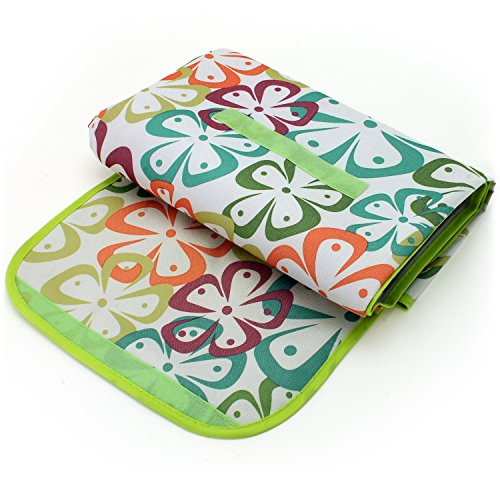 CampTeck U6526 XL 200 x 145cm Pieghevole Coperta Picnic Impermeabile Tappeto Picnic con Maniglia per Outdoor, Campeggio, Spiaggia - Fiore Verde