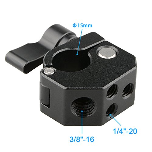 CAMVATE 15 mm morsetto con 1/4"-20 e 3/8"-16 manopola fori filettati (nero)