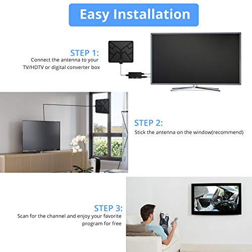 【Facile da usare】Posiziona l'antenna TV su una finestra per ottenere i migliori risultati e cerca i canali nel menu del televisore. Se si utilizza una TV HD piatta, consultare il manuale della TV per assicurarsi che la TV abbia un sintonizzatore integrato per la visualizzazione gratuita o è necessario installare una scatola digitale aggiuntiva.