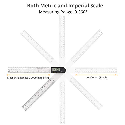 【Misura multifunzione】Combinato con righello e sensore angolare in acciaio inossidabile, angolo di misurazione e lunghezza (metrico e imperiale);
