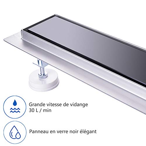 Canale doccia in acciaio inox canalina piatto scarico pavimento scarico doccia-vetro grondaia nero-60cm