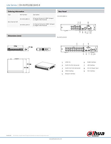 Dahua XVR5116HS-X 16 canali Pentabrid Hybrid HD-CVI AHD HD-TVI Videoregistratore CVBS e telecamere IP