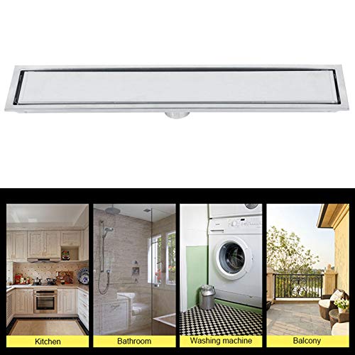 Canalina per Doccia in Acciaio Inox, Scarico Lineare, Scarico a Pavimento 4cm, Canaletta Scarico per Doccia, Sifone per Pavimento Rettangolare Sottile (50cm)