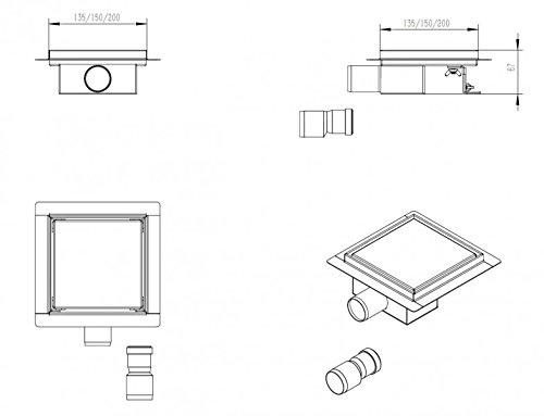 Canalina di scarico doccia T02 in acciaio inox - sistema di drenaggio incluso - larghezza selezionabile, Dimensione:20 x 20 cm