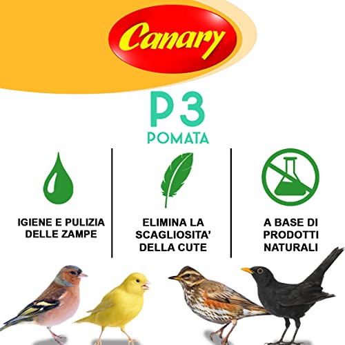 Canary Pomata P3-1 Pack da 3 vasetti Pomata per Le Zampe di Tutti Gli Uccelli Balsamo, Crema Uccelli insettivori, frugivori, pappagalli - Confezione da 3 barattoli (3x20g)