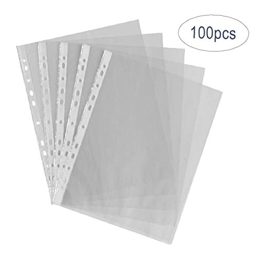 Cancella tasche forate A4 plastica trasparente file Raccoglitore ad anelli cartelle di archiviazione Portafoglio Foglio Protector 100PCS Household Articolo
