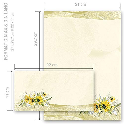 Set di cancelleria Fiori & Petali Natura, GIRASOLI GIALLI | Ordine in linea! | Paper-Media | 100 pezzi Carta da lettera ez 100 buste (senza finestra)