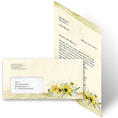 Set di cancelleria GIRASOLI GIALLI, Natura Fiori & Petali | Ordine in linea! | Paper-Media | 100 pezzi Carta da lettera ez 100 buste (con finestra)