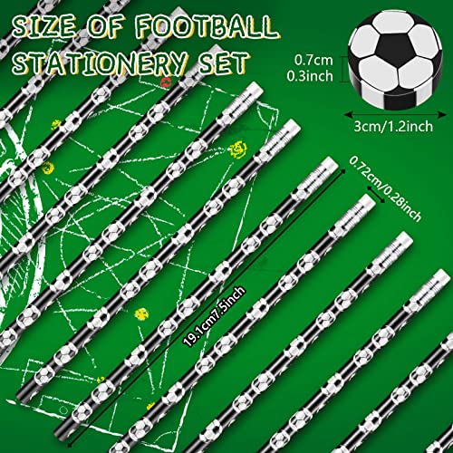 Set di cancelleria a tema calcio: queste matite con gomma da calcio e gomme da calcio sono una buona scelta per lo scambio di regali dei bambini, ma adatte anche come accessori decorativi per feste per aumentare l'atmosfera dolce e calda delle vacanze, lasciandoti ricordi indimenticabili