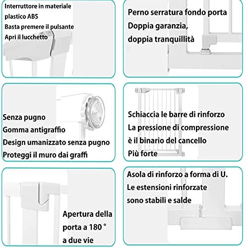 Cancelletto per bambini scale Senza forare Cancello per bambini Estensibile Cancelletto di sicurezza Sicurezza 1 ° Adatta alle Porte e Scale Acciaio Bianco - Cancelletto